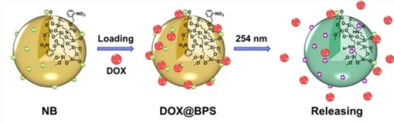 有机硅材料是生物分子的优良载体,团队还研发了一种可精确控制目标分子释放行为的光响应性可控释放体系,通过简单便捷的光刺激方法和温和的静电相互作用,实现目标分子的精确可控释放。该体系以设计合成的具有光触发电荷反转性能的桥联聚倍半硅氧烷纳米粒子为载体,通过调整光照射强度、照射时间和On/Off模式,对目标分子的释放位置、释放时间,尤其是释放量,可实现多维度的精确调控。该该类材料和技术方法可用于食品添加剂、染料、化妆品、农药、紫外线吸收剂和药物等目标分子的运输和释放。