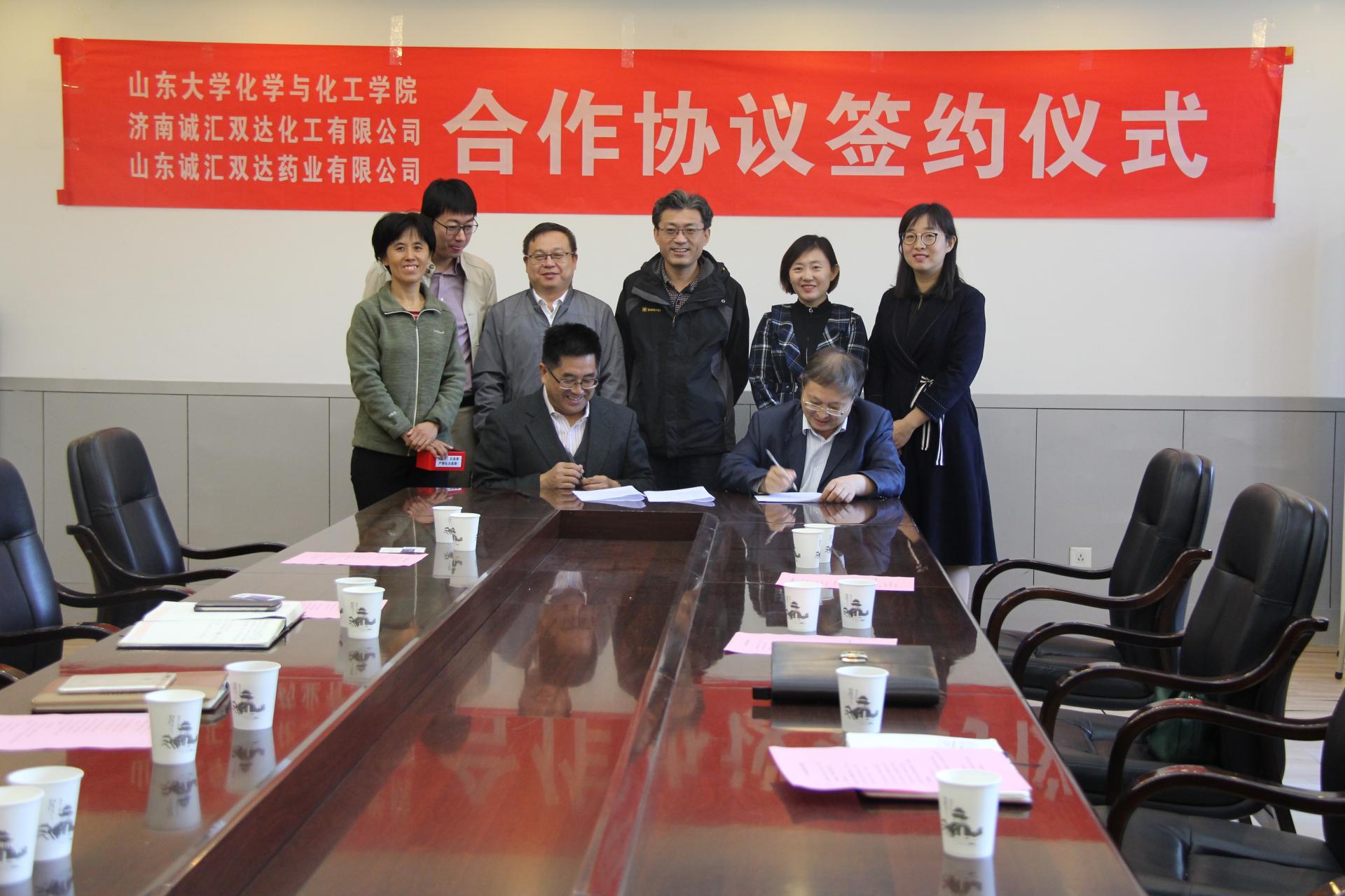 签约仪式上,院长郝京诚教授与董事长于东海先生分别代表双方签订了协议。根据协议,济南诚汇双达化工有限公司将连续五年每年出资10万元,在化学院建立“诚汇双达奖助学金“,同时双方也将在科学研究、社会实践等多方面展开合作交流。