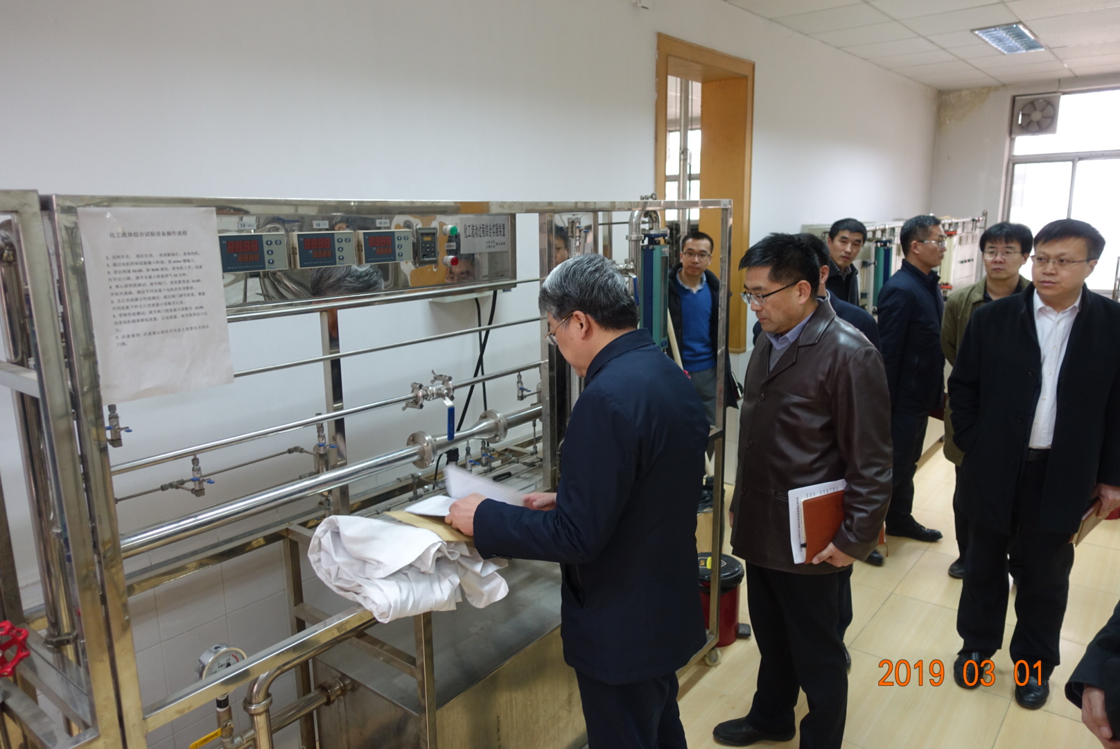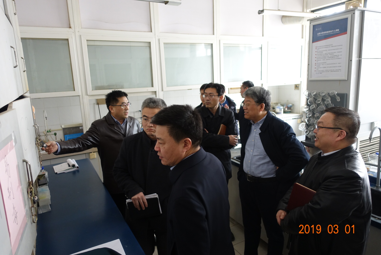 郭新立首先查看了化工实验室、胶体合成实验室、超镜室、胶体材料深加工实验室等7个实验室,与实验室负责人和学生进行了交流,询问了学生实验操作、安全教育、安全措施等情况,叮嘱学生做实验千万不要存侥幸,不要怕麻烦,一定要符合实验操作规定,注意实验安全。