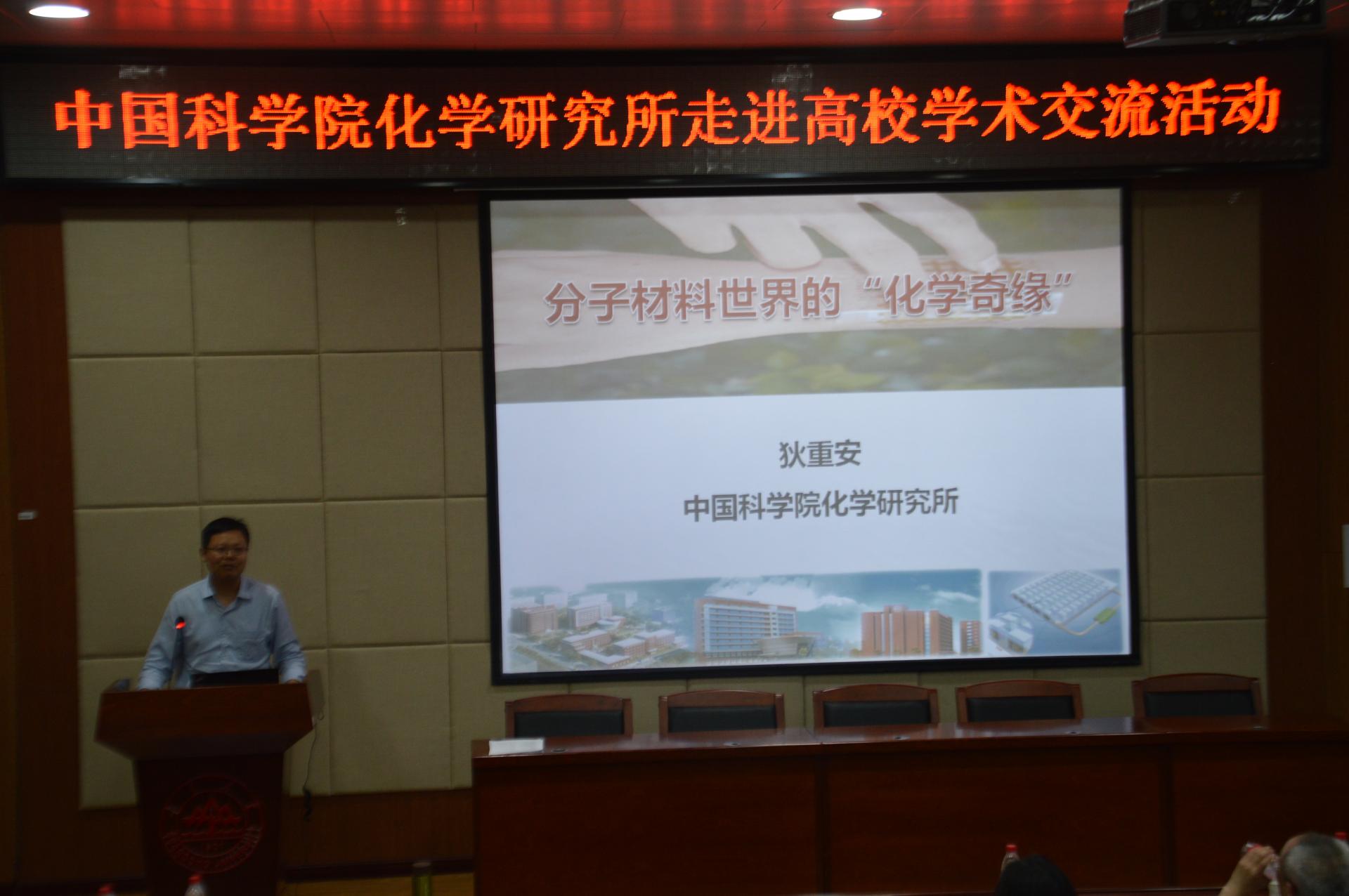 5月21日14:00,中国科学院化学研究所走进高校学术交流活动暨化学院“化时代”校友讲坛在化学老楼学术报告厅顺利举行。中科院化学所党委书记王笃金研究员以及化学所狄重安研究员分别做了题为“大品种高分子材料的创新之路”及“分子材料世界的化学奇缘”的精彩报告,化学院部分师生参与了这次活动。