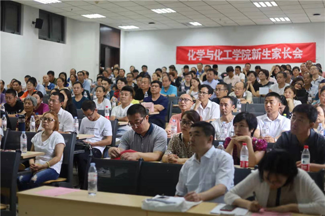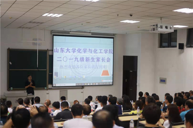 家长会前,学院把报到现场新生和家人的合影照片发给每位家长。家长纷纷表示在山大度过的每时每刻都在感受着学校、学院的热情、真诚和用心,把孩子送到山大化学院是无悔的选择,今后将和学院一起,共同助力学生成长,谱写2019级学生的新篇章。