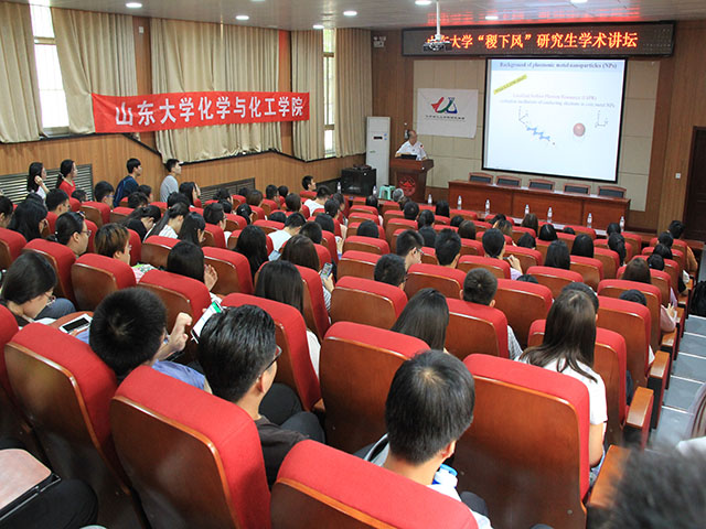 朱怀勇教授为金属纳米颗粒光催化剂的开创者,他的报告主要围绕表面等离子共振(LSPR)光催化展开,讲解了其具体机理、反应路径、催化性能的影响因素等,并为同学们介绍了团队成员和取得的主要成果。在报告结尾,朱教授热情邀请山大的师生到昆士兰科技大学进行学术访问和交流。