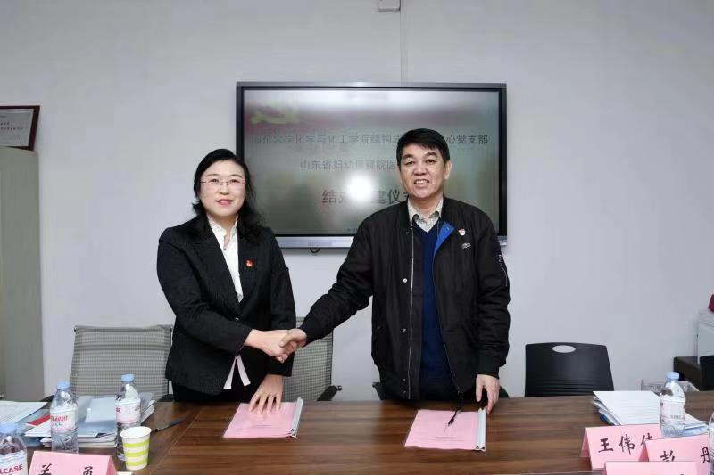 11月26日,万象城awc体育结构成份测试中心党支部与山东省妇幼保健院医技党支部在中心校区化学老楼举行支部结对共建签约仪式。两个党支部的书记董姝丽与谭庆坤分别代表各自党支部签订《党支部结对共建战略协议书》。
