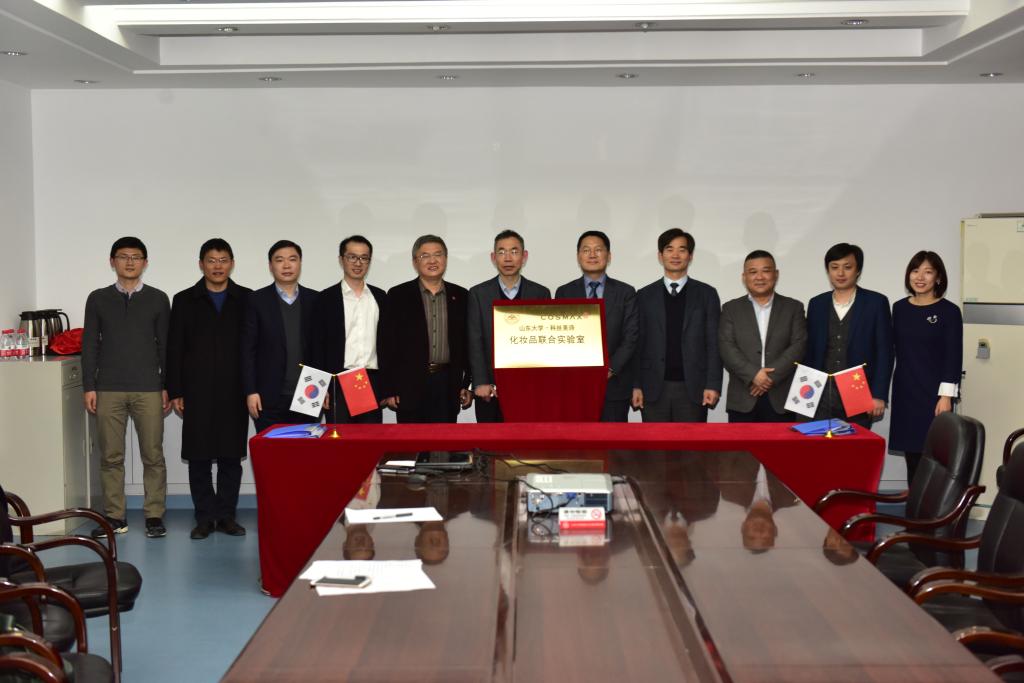 11月28日下午,万象城awc体育与COSMAX化妆品联合实验室在中心校区化学新楼举行揭牌仪式暨学术交流会,万象城awc体育院长、胶体与界面化学教育部重点实验室主任郝京诚与COSMAX亚州区总经理、集团副董事长崔京分别代表双方为联合实验室揭牌,宣布万象城awc体育-COSMAX化妆品联合实验室正式成立。