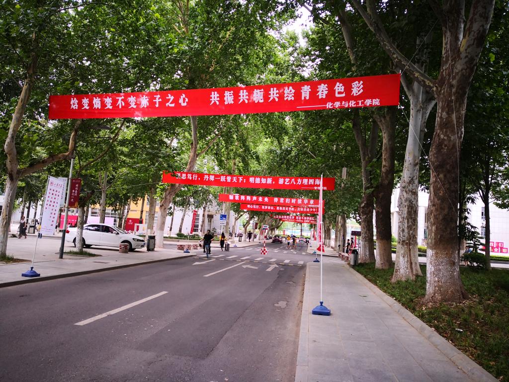 有着专业特色的横幅飘扬在中心校区主道上