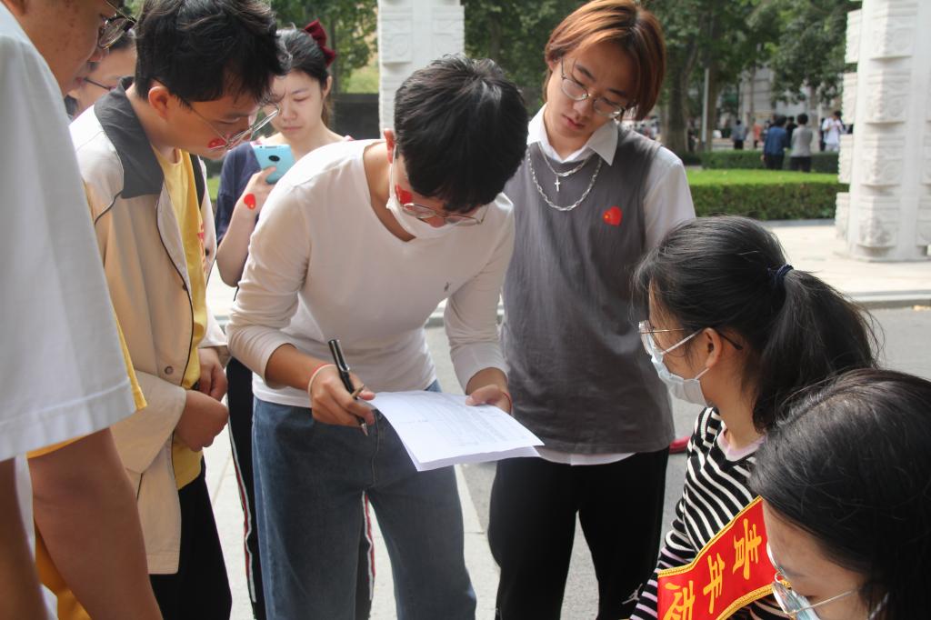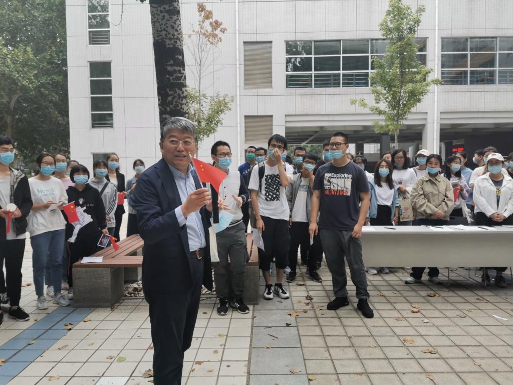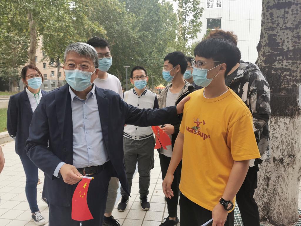 在“中心寻宝”活动中,同学们分为小组,在志愿者的引领下前往目的地寻找“宝藏”,同时进行了“你画我猜”、“传球接力”等趣味游戏。活动中,校党委书记郭新立到达现场并作讲话,郭书记向同学们诠释了山大的“山魂海韵”,同时也祝愿同学们双节快乐,学习上不断取得优异成绩。