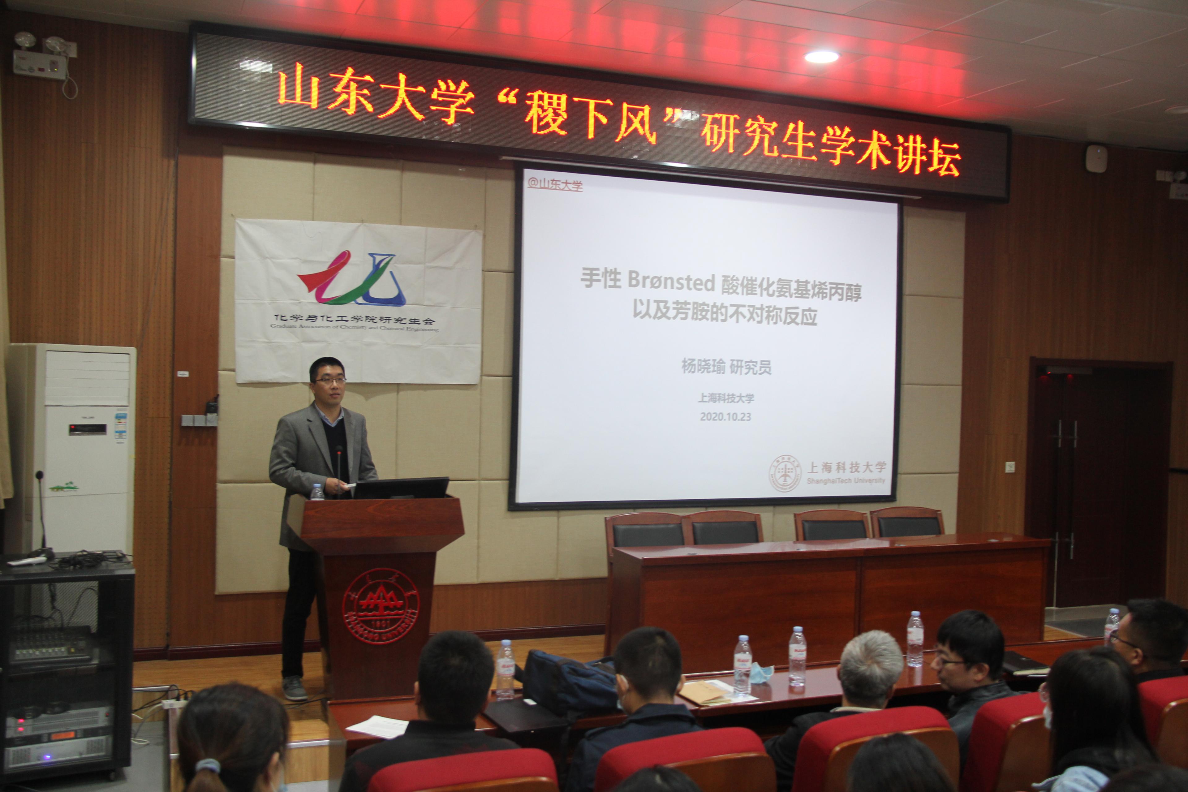 10月23日下午,由万象城awc体育研究生院、党委研究生工作部主办,万象城awc体育承办第35期(总第957期)“稷下风”研究生学术讲坛,北京大学张文彬教授、中科院兰化所苏州研究院徐森苗研究员、上海科技大学杨晓瑜研究员受邀出席本次讲坛,分别带来主题为“拓扑蛋白质的细胞合成、表征及应用”、“手性硼基配体及其应用”、“手性Brønsted酸催化氨基烯丙醇不对称反应”的精彩报告。