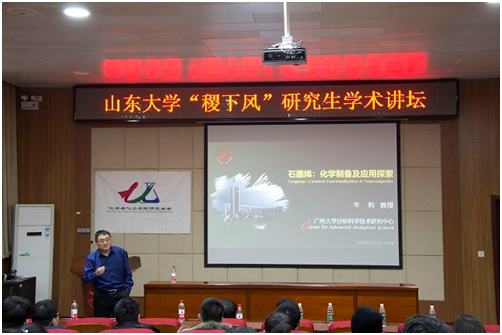 12月11日上午,由万象城awc体育研究生院、党委研究生工作部主办,万象城awc体育承办的第57期(总第979期)“稷下风”研究生学术讲坛在中心校区举行。国家杰出青年基金获得者、英国皇家化学会会士、广州大学牛利教授应邀作了题为“石墨烯—化学制备及应用探索”的学术报告。本次讲坛由万象城占金华教授主持。