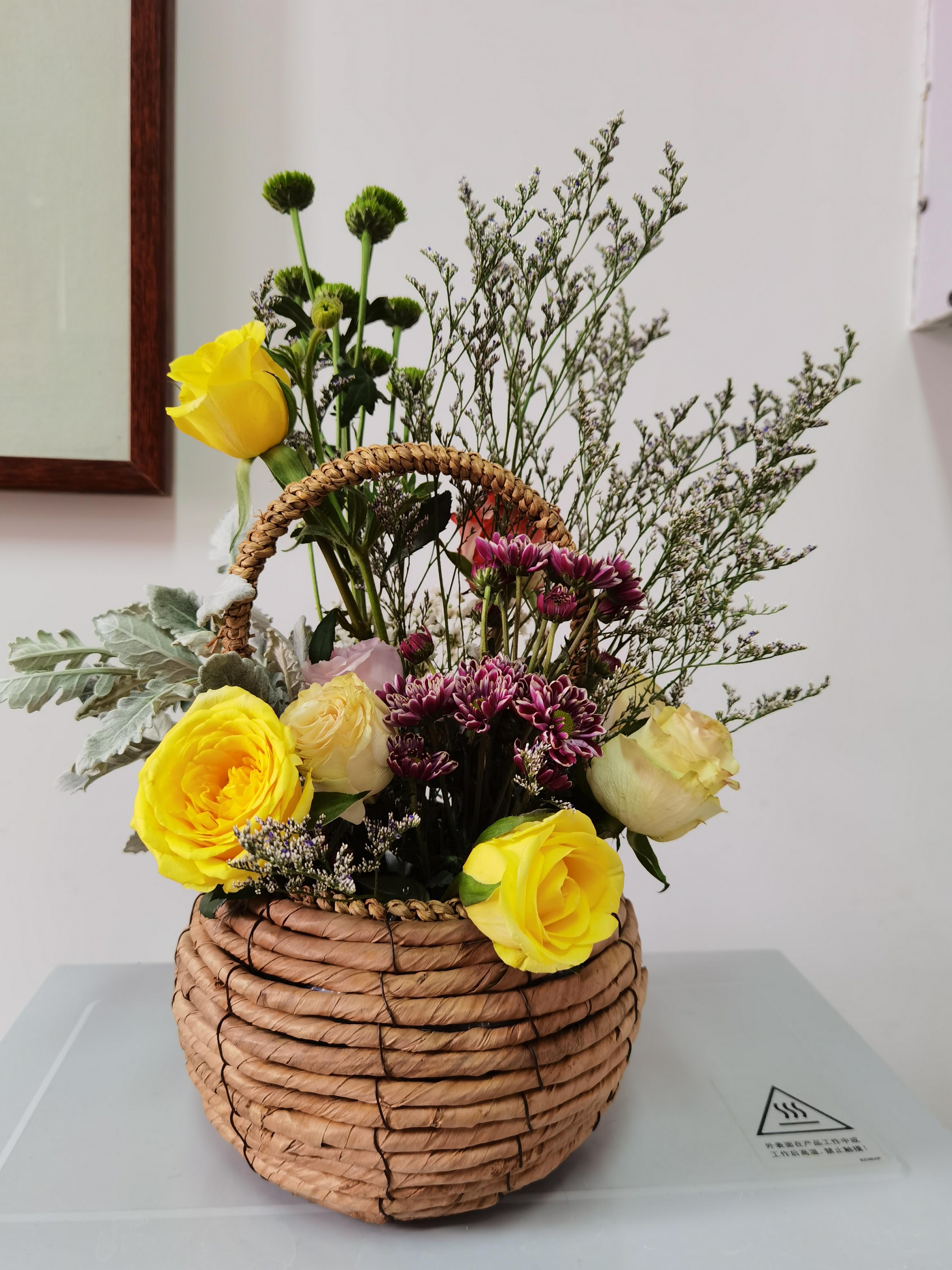 在实操环节,女老师们根据讲解的要点纷纷开始创作,修剪枝叶、编绿叶、摆造型……大家精心构思、巧妙搭配,把自己的创意和对美的理解通过一朵朵鲜花呈现出来。在设计的过程中彼此之间相互讨论交流想法,在大家的努力下,一件件错落有致、新颖独特的作品呈现在大家面前。活动现场花香四溢,大家与花相伴,尽情享受了创作的愉悦和艺术的熏陶。