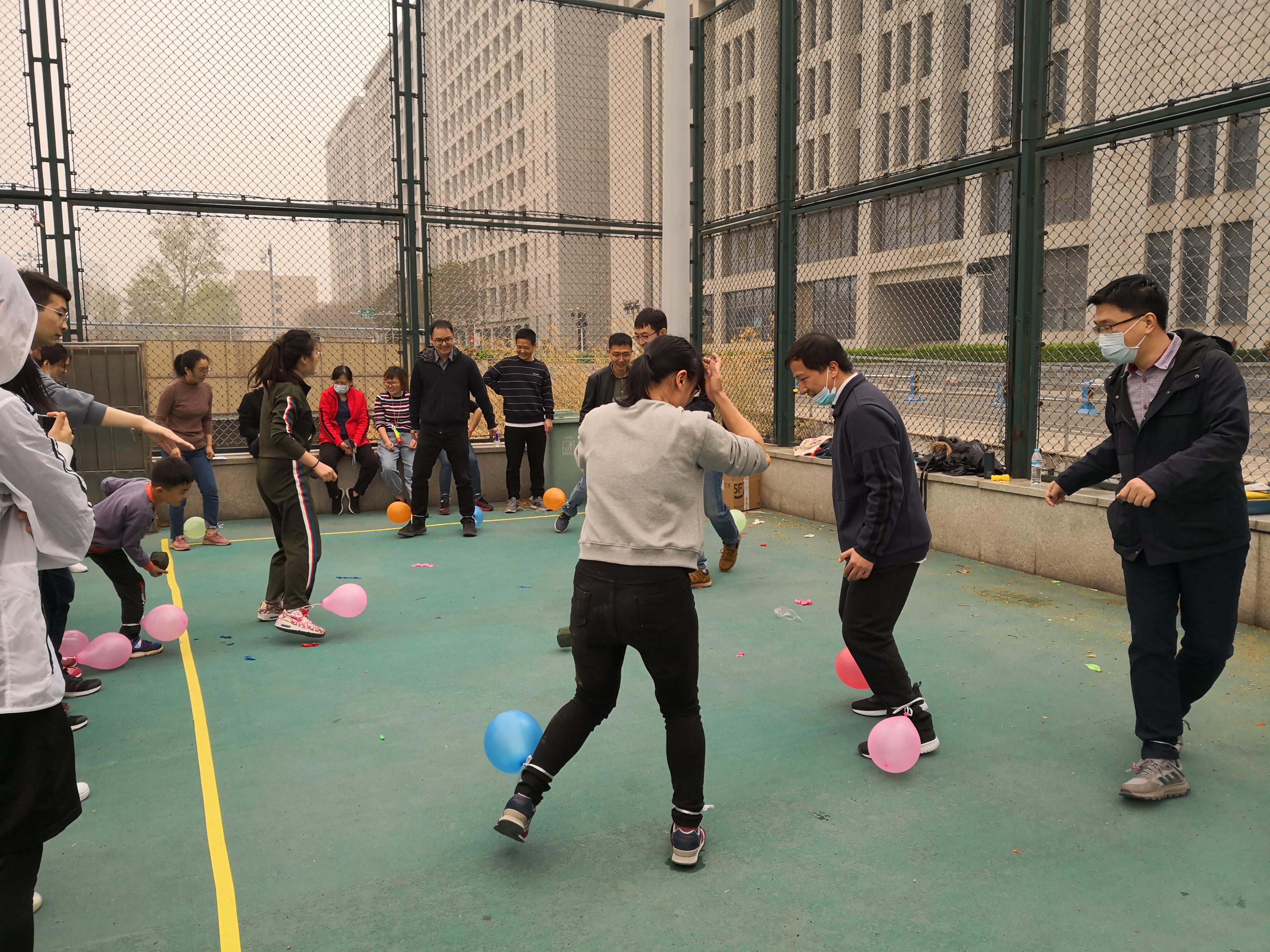 “球进啦!”,这是足球射门传来的欢呼声;“八环八环!”,老师们将飞镖精准投掷到圈中得到了大家的热烈掌声;“十进八!”大家惊讶于毽子入筐时,老师们默契的配合;“加油加油,快到终点啦!”,有人在为参加摸石头过河的老师加油鼓劲。最激烈的当属最后一个项目——踩气球,参赛队员在划定好的区域中或防守,或进攻,或联盟,眼疾脚快,瞅准时机,一脚踩破别人脚上的气球,赢得最后的胜利。