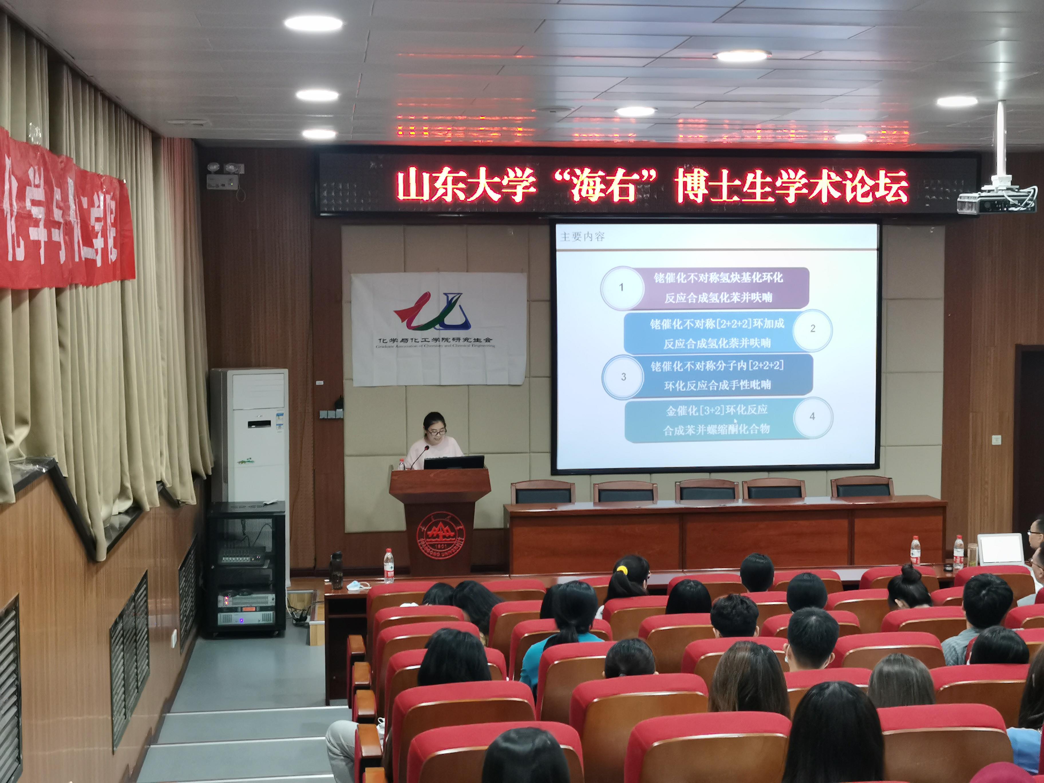 5月6日,由万象城awc体育研究生院、党委研究生工作部主办,万象城awc体育承办的2021年第6期(总733期)“海右”博士生学术论坛在中心校区化学老楼学术报告厅举办,2018级博士生滕琪作了题为“基于炔烃的环化反应构建复杂多环化合物”的报告,徐政虎教授作为点评嘉宾。
