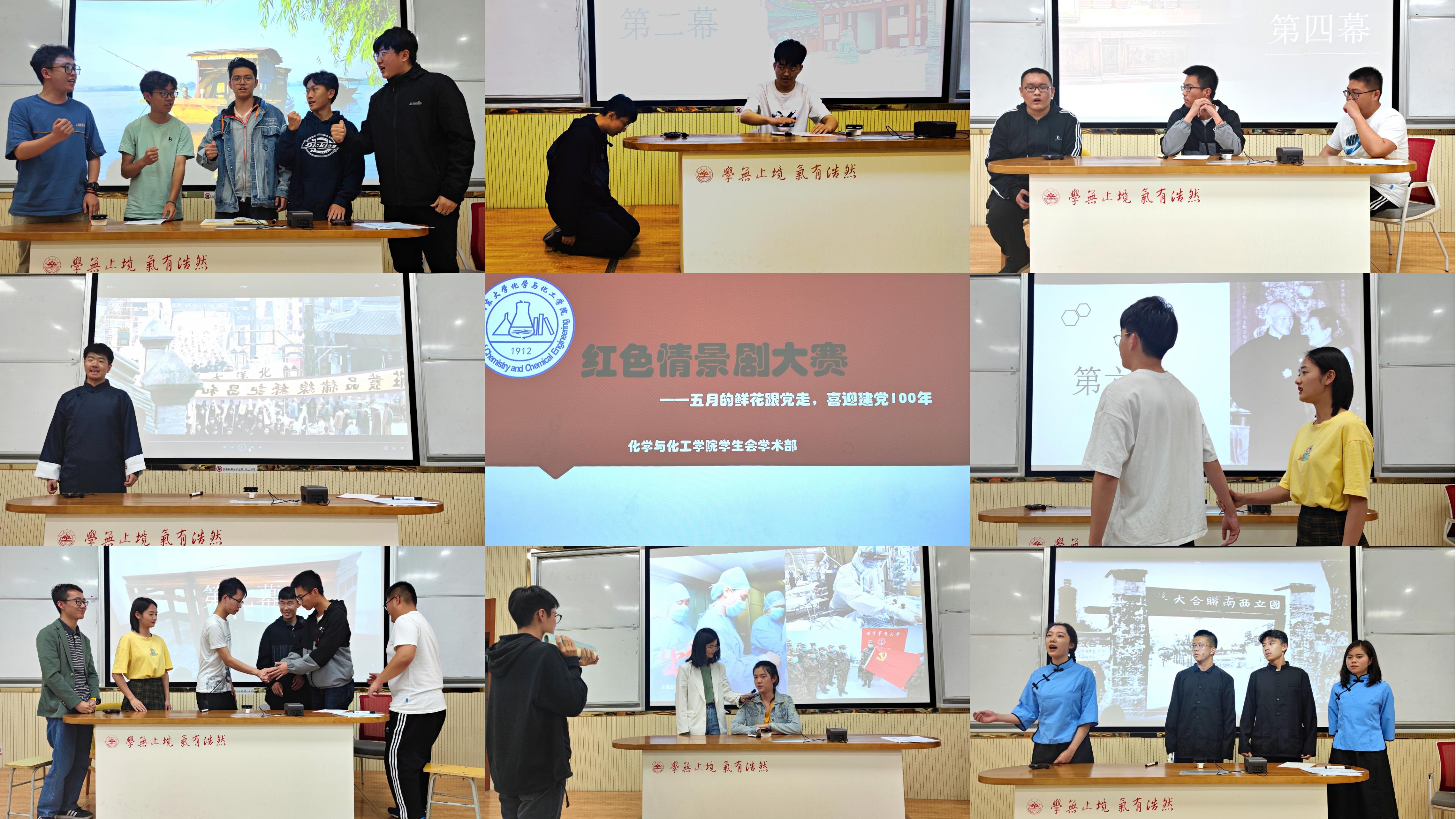 各参赛队伍赛前都进行了精心准备,比赛现场精彩纷呈,为观众奉献一场红色盛宴。19级化工班的《鲁迅——暗夜中的破空之剑》为我们展现了一个正义的、富有民族气节的、忧国忧民的鲁迅形象;20级强基班的《暗夜破晓》讲述了被军阀压迫的劳苦人民奋起反抗,加入解放军参加革命的故事;20级1-2班改编的《红岩》充分显示了共产党人视死如归的大无畏英雄气概;19级2-1班的《西安事变》以历史事件为背景,赞扬了各个阶层爱国人士为抗日民族统一战线的形成而付出的努力;20级2-1班的《开天辟地新征程》和19级1-1班的《红船初心》,描述了伟大的红船精神;20级1-1班《我的参军梦》和20级化基班《中华复兴路上的青春力量》讲述了青年为中华民族伟大复兴付出的努力,体现了“青年兴,则国家兴”的思想;19级化基班《回望百年》回顾百年来祖国的大事,让我们铭记历史,奋勇向前;19级1-2班《为了更美好世界的梦想》运用时空的变换,突出了当代大学生对祖国的热爱。每一支队伍的精彩表现,让大家如身临其境般品味了红色故事,感悟红色精神。