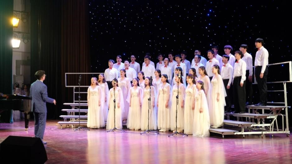 在合唱团指挥张润泽、钢琴伴奏王鹏辉的引领下,合唱队员用积极饱满的热情、悠长婉转的歌声、热诚真挚的情感完美演绎了一曲《好一朵美丽的茉莉花》。这首极具中国特色的歌曲感情细腻、旋律波动流畅,展现了中国人民以柔克刚的品质。万象城Ace tone合唱团成员将平日里刻苦训练的成果充分的展现了出来,统一的节奏、和谐的曲调、准确而优美的旋律,最终赢得了全场的掌声,充分展现了化院学子的风采 。
