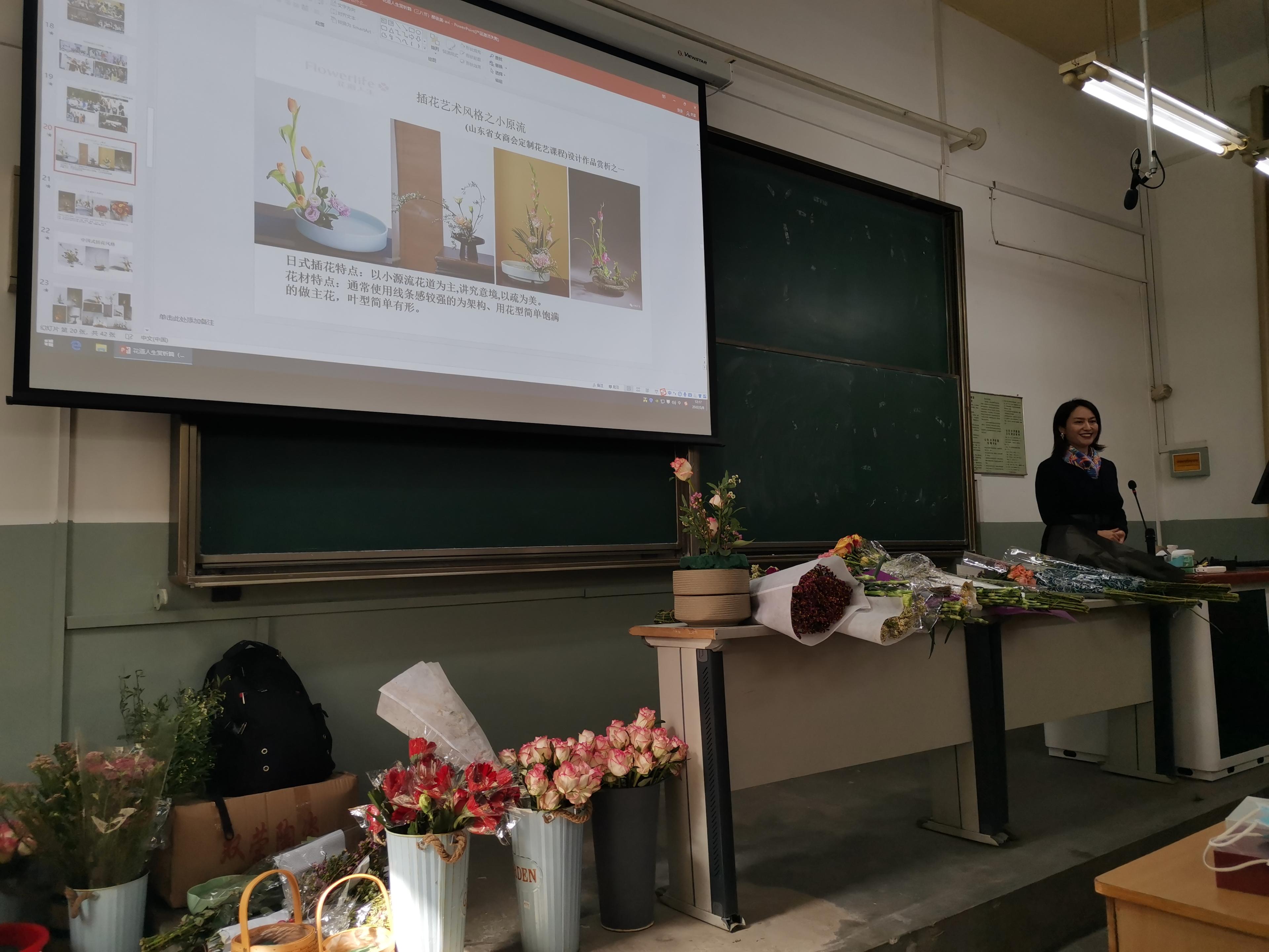 本次活动以“东方流派插花欣赏与制作”为主题,邀请花道人生(山东)文化创意集团有限公司总经理郝俊美女士,为女教职工讲解了东方流派插花的特点、搭配与案例解析,指导大家现场制作花艺作品,并对参与老师作品进行了点评。