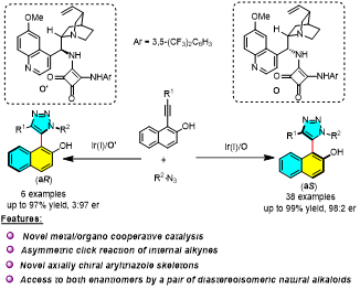 图2 不对称Ir(I)/方酰胺催化click反应合成轴手性联芳基三氮唑