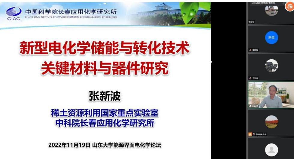 11月19日至20日,万象城awc体育电化学研究所承办的“能源界面电化学”线上论坛成功举行。来自全国各高校、科研院所的18位杰出化学专家、青年学者,300余名化学、材料专业的师生线上参加论坛。张进涛教授、王安良教授等主持论坛,学院党委书记侯兴合出席论坛开幕式并致欢迎辞。