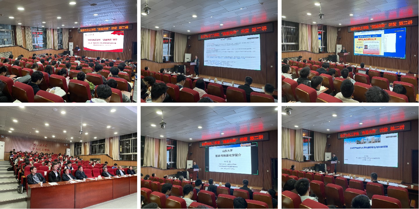 李英教授在致辞时表示我校物理化学学科是国家级重点学科,在多年的发展中在胶体与界面化学、理论化学、电化学等方向形成了突出特色,拥有胶体与界面化学教育部重点实验室和理论和计算化学山东省重点实验室等研究平台,研究基础雄厚,成果丰硕,为国家培养了大批人才。希望同学们听取报告会后,能够深化对三个专业研究方向的认识,发掘自己的研究兴趣和领域,为未来科研学术工作打下良好的基础。