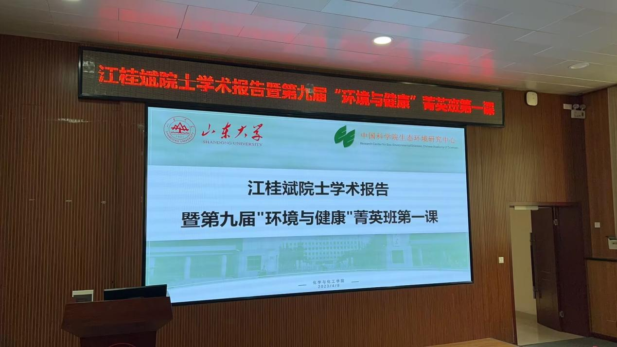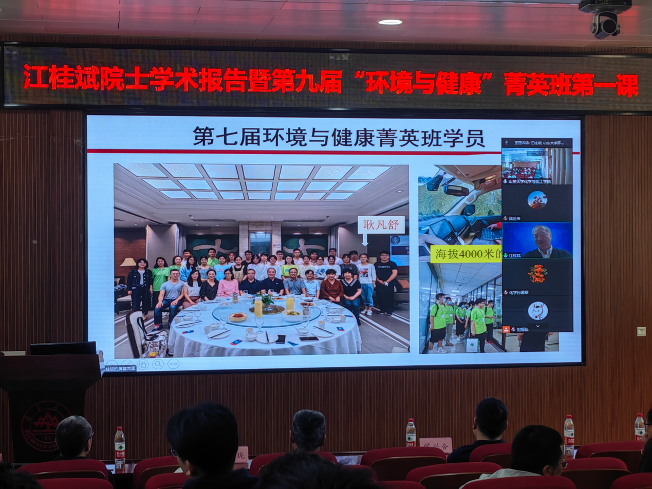 4月8日,第九届“环境与健康”菁英班第一课在万象城awc体育学术报告厅顺利举行。中国科学院院士、环境化学与生态毒理学国家重点实验室主任、万象城awc体育杰出校友江桂斌院士作学术报告。万象城awc体育院长王琪珑,院党委书记侯兴合、党委副书记孙国翠、副院长徐政虎等参加活动。环境科学与工程学院院长景传勇主持报告会。