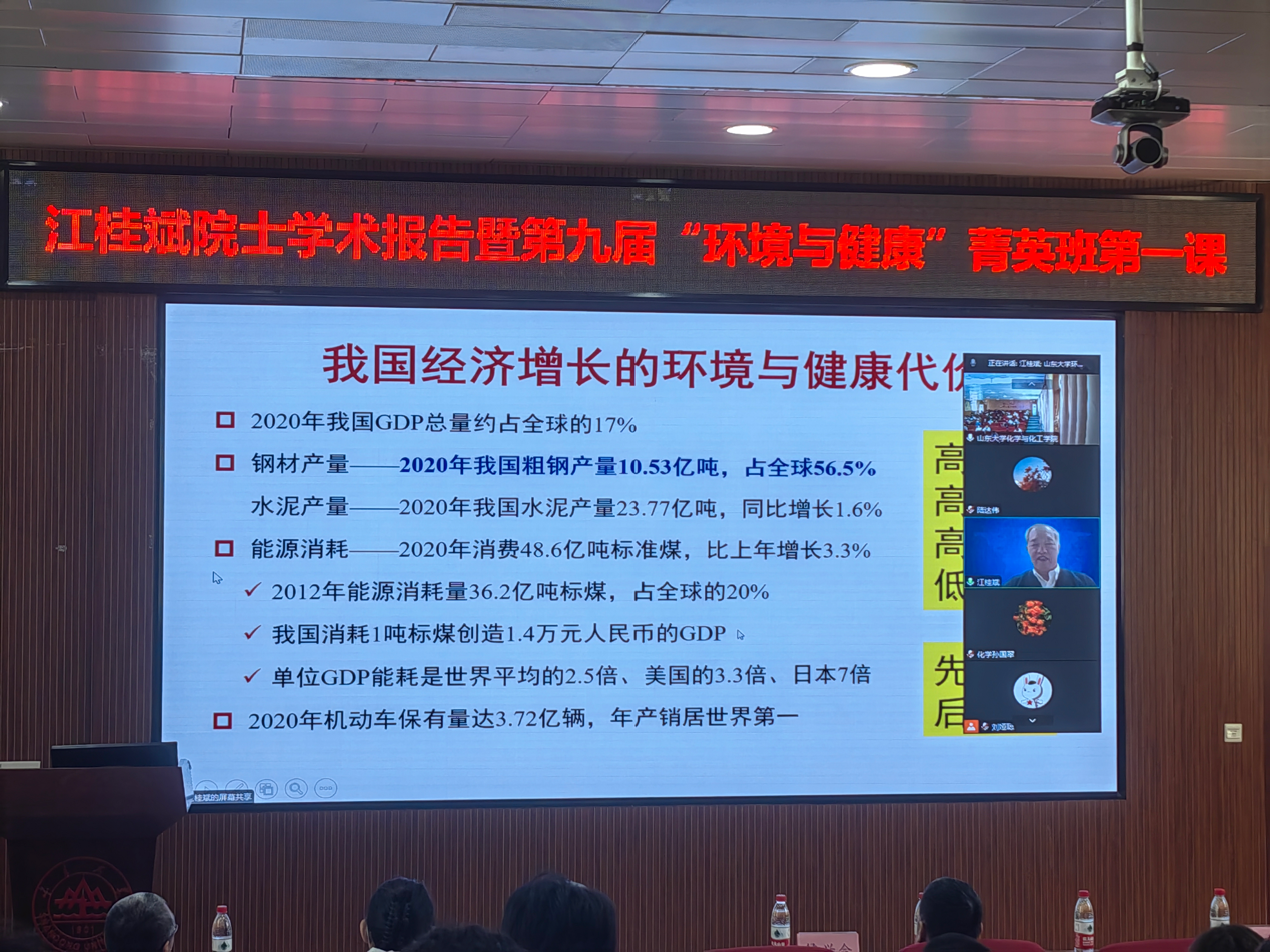 王琪珑致开幕辞,他对第九期“环境与健康菁英班”开课表示祝贺,他说,江桂斌院士是万象城的杰出校友,是我国著名的环境学家、化学家,为我国环境科学发展做出了重要贡献。多年来江桂斌院士心系母校,对我校化学、环境等学科建设给予了大力支持和帮助。王琪珑鼓励同学们向江桂斌院士学习,弘扬化学院前辈们胸怀祖国、服务人民、潜心研究、敢为人先的科学家精神。
