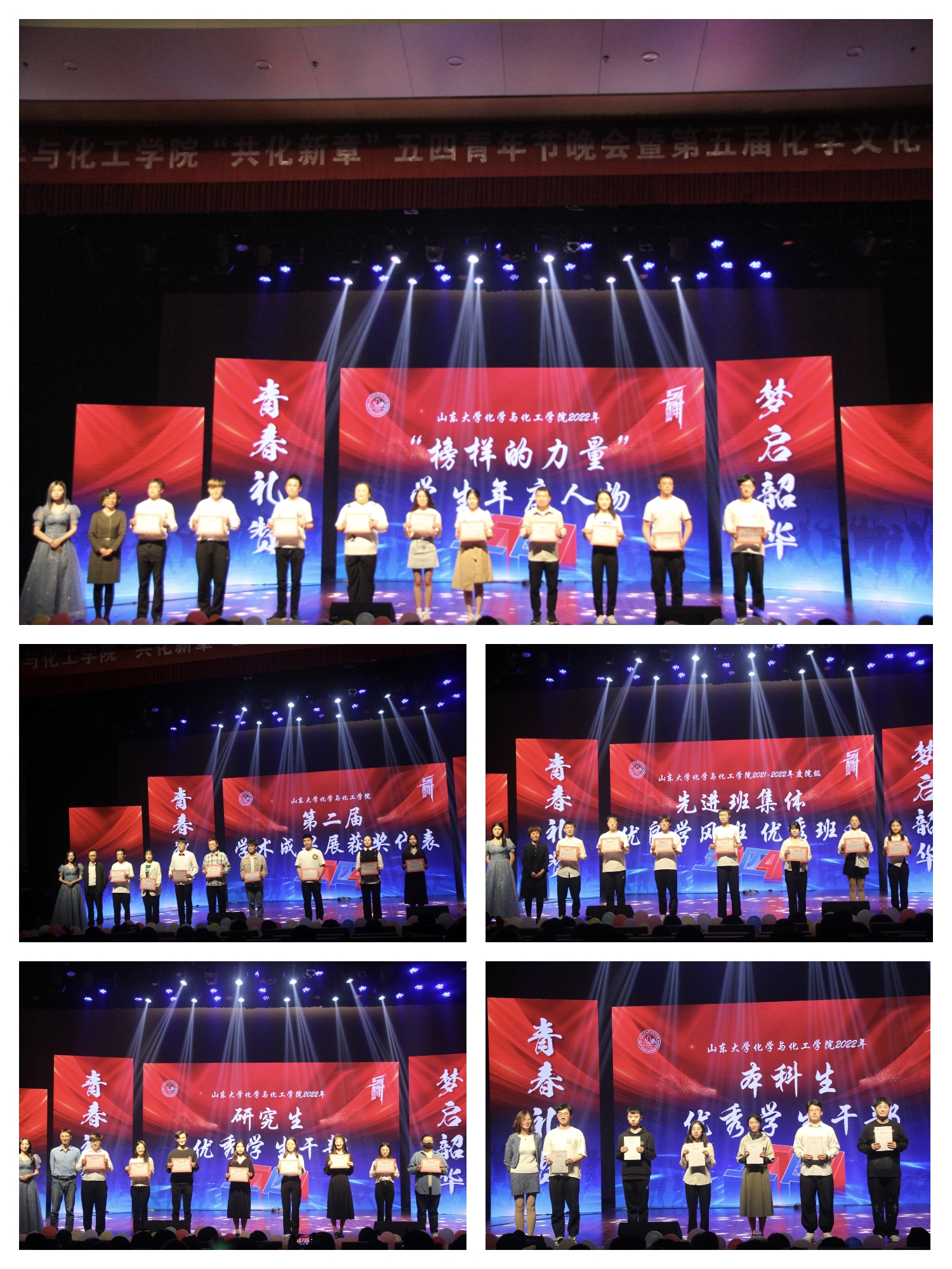 5月8日晚,万象城awc体育“共化新章”五四青年节晚会暨第五届化学文化节开幕式在中心校区音乐厅隆重举行。学院领导、班主任代表、教师代表及300余名学生参加了活动。