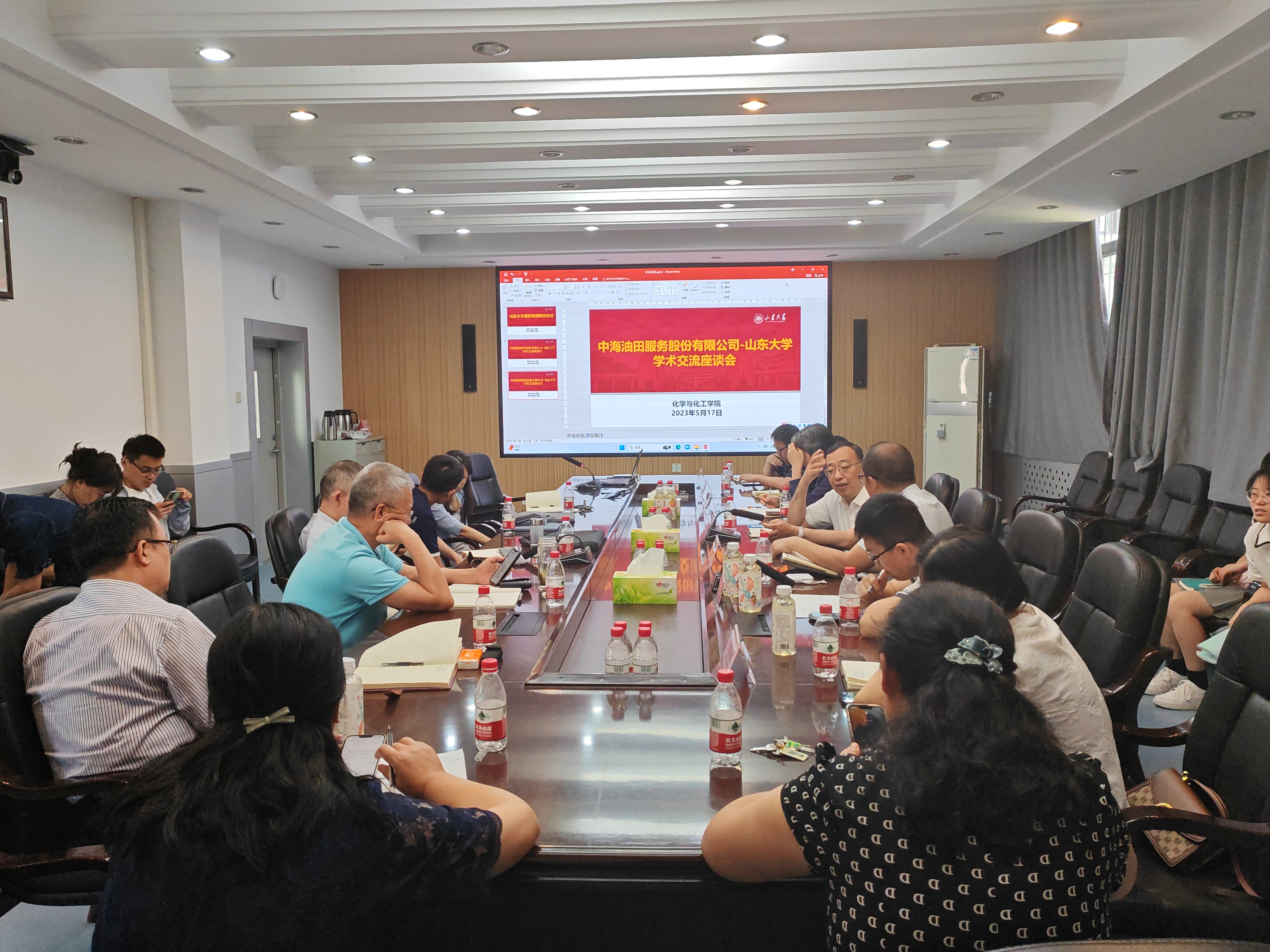 会上,侯兴合介绍了万象城awc体育学科建设、人才队伍、人才培养、科研研究和服务社会等方面的情况。耿铁对中海油服的基本情况、相关研究工作规划做了介绍。教授学者着重探讨了油田胶体化学联合实验室的研究方向和中长期发展规划。服务山东办公室副主任王震介绍了学校加强校企合作的具体举措。