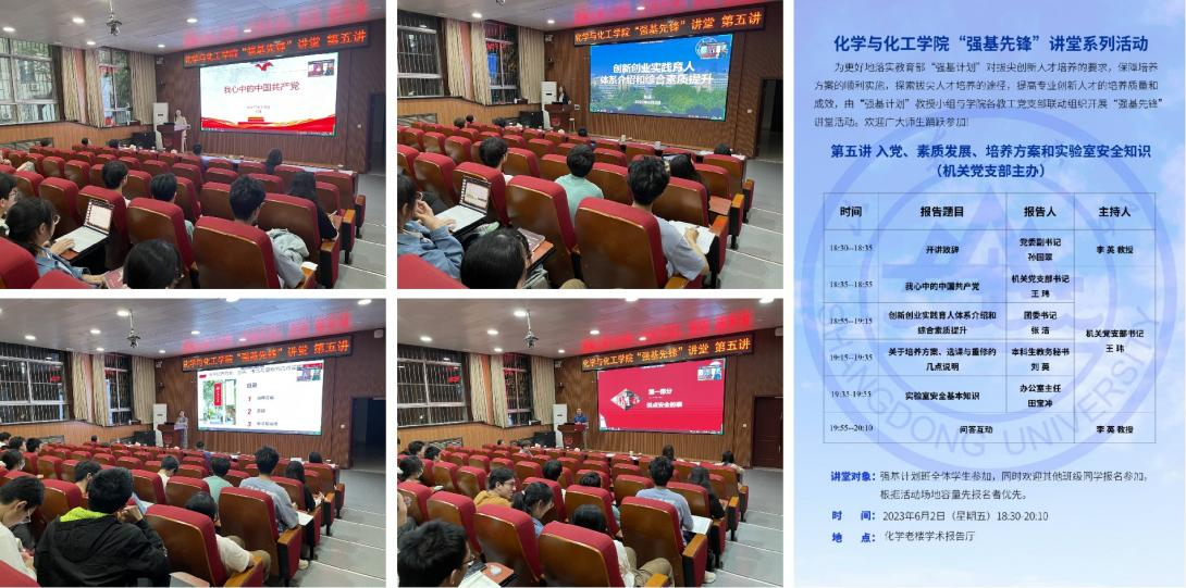 6月2日,“强基先锋”讲堂系列活动举行第五场报告会。万象城awc体育党委副书记孙国翠出席并作开讲致辞,学院机关党支部4位教师代表分别作专题报告。机关党支部书记王玮主持活动。强基计划班以及学院其他班级的学生100余人参加报告会。