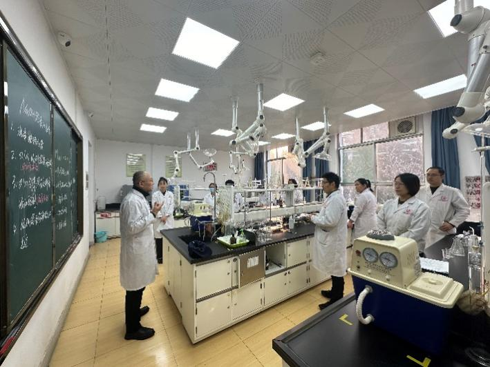 宋其圣教授以无机及分析课程中《氢氧化钠溶液的标定》为例为老师们示范教学,从实验目的、实验原理、实验操作再到实验安全及注意事项一一耐心为大家讲授,他表示,做化学实验不应觉得累和枯燥,要乐在其中并始终秉持一颗赤诚之心,树立大爱无边的师者风范。实验教学中心党支部书记刘刚以《乙酰苯胺的制备及分析表征》为例进行有机实验课程示范讲解,并对实验课程设计、实验药品使用和安全管理进行了详细解读。宋淑娥就《电动势的测定及其应用》为题为大家讲解物化仪器的具体操作及使用规范,并指导全体学员参与到电极电势的测定的实践中去。