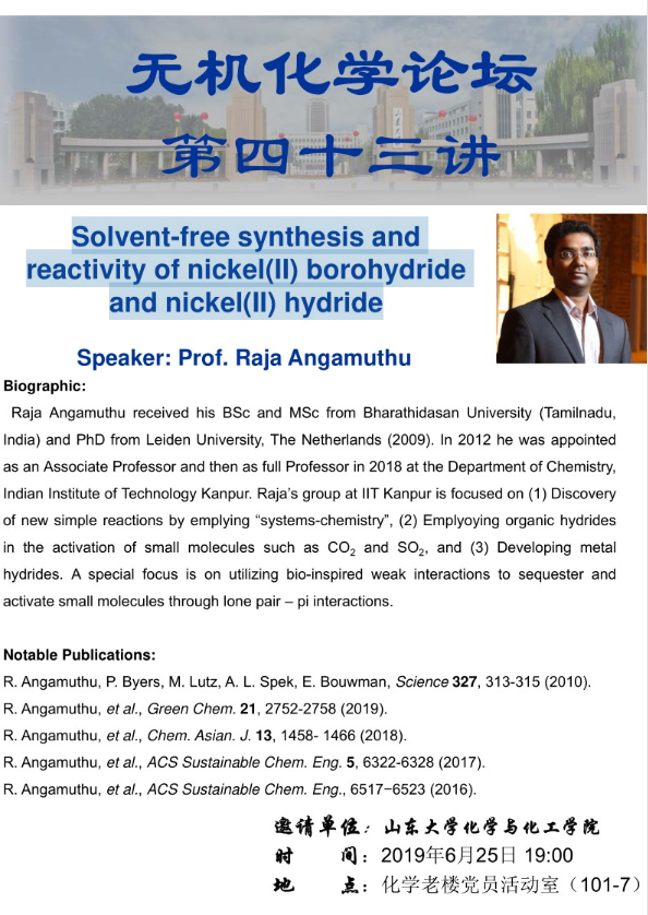 无机讲坛第四十三讲:Solvent-free synthesis and reactivity of nickel(II) borohydride and nickel(II) hydride